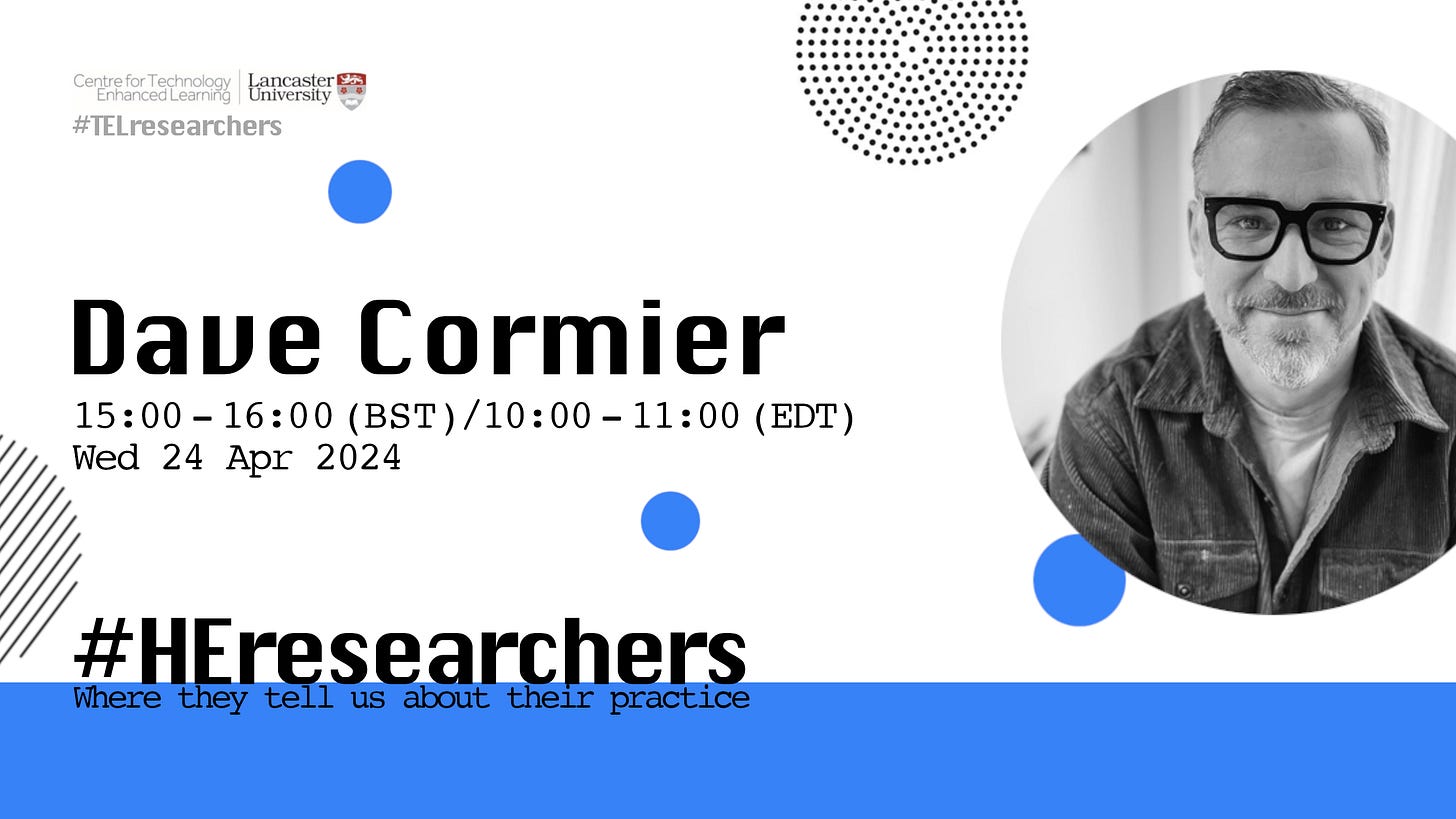 #TELresearchers & #HEresearchers with Dave Cormier